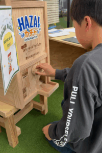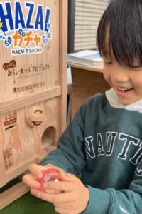 名前の通り端材を使って作られたガチャで、回すと本来のガチャのように、カプセルが出てくるようになっています。