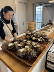 捌き終わりには、サザエやコウイカと合わせて、旬の糸島野菜もたっぷり使ったワンプレートランチを囲み、ゆったりとした時間をお過ごしいただきました。